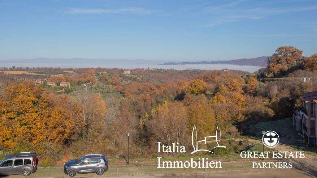 Die Ausrichtung nach Südosten und Südwesten sorgt für diffuses Licht den ganzen Tag über, während der Blick auf die umbrisch-toskanischen Hügel die malerische Landschaft und die Ruhe des Hauses unterstreicht. Die leicht erhöhte Lage gewährleistet ausreichend Privatsphäre und fügt sich harmonisch in die angenehme Wohngegend ein, ohne die Nachbarn zu stören.