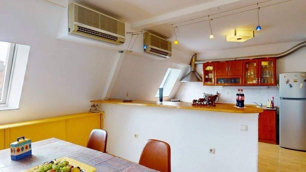 Prodaje se 5-sobni dvoetazni stan ukupne povrsine 135,18 m2 u zgradi s liftom na zagrebackoj Malesnici. Stan se nalazi na 6 katu zgrade i vodi se kao stan na tavanu. Na donjoj etazi se nalaze ulazni prostor s protuprovalnim vratima, hodnik, kupaonica s kadom, kuhinja s blagovaonicom ( moguca dnevna soba) i spremiste. Na gornjoj etazi je prostran hodnik s velikim boravkom , spavacim sobama te je mogucnost prosirenja dodatne sobe. Grijanje i topla voda gradska toplana, razdjelnici, klimatizirano. Orijentacija stana sjever-jug. Ispred zgrade je javni besplatni parking. Blizina svih sadrzaja, vrtica, osnovne i srednje skole, autobusna stanica i vlak. Kroviste mijenjano 2016. godine, uredna vlasnicka dokumentacija , mogucnost kupnje kreditom poslovnih banaka.