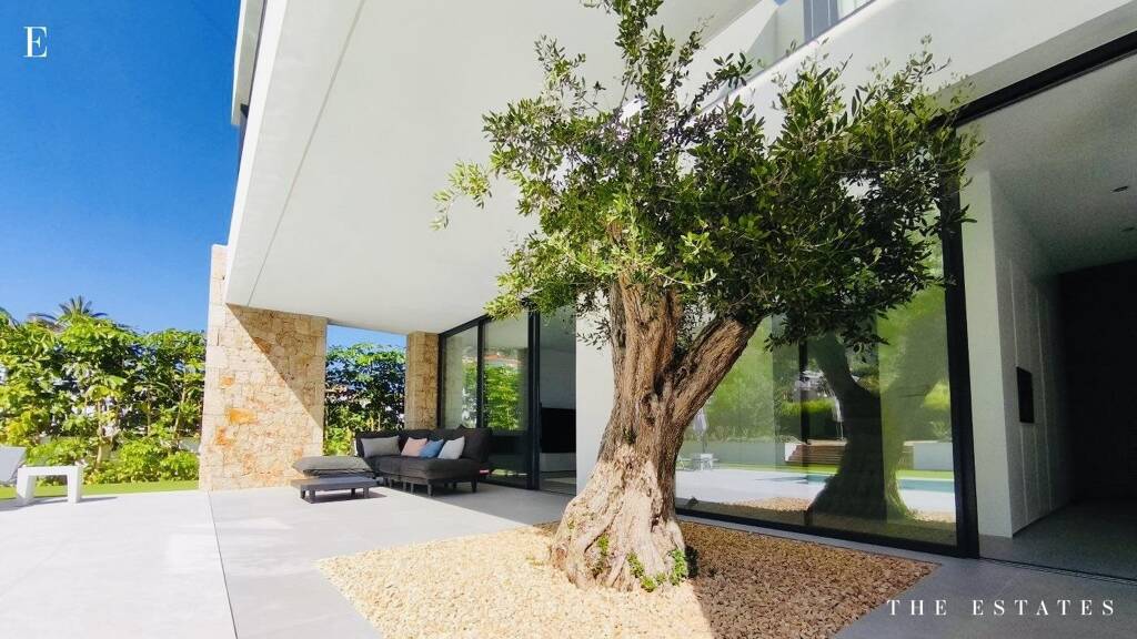 Diese außergewöhnliche Villa, fertiggestellt Ende 2023, vereint moderne Architektur, erstklassige Materialien und mediterranes Flair.