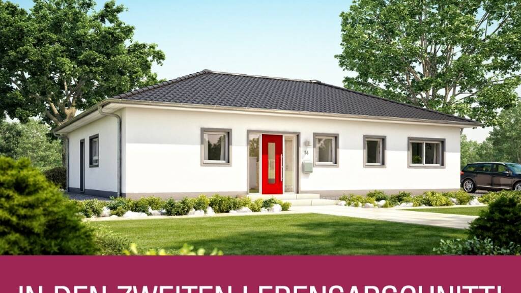 Kern-Haus bietet mit dem Bungalow Balance ein Traumhaus mit vielen Qualit ten - und alles auf einer Ebene. Der praktisch geschnittene Grundriss bietet zwei Kinderzimmer, ein Schlafzimmer und ein gro es Wohn- und Esszimmer mit offener K che. Eine bedachte Terrasse l dt zum Genie en und Entspannen mit Freunden ein.