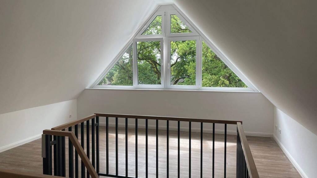 Die weiß gestalteten Kunststofffenster sind dreifach isolierverglast. Die Beheizung, kombiniert mit der Warmwasserversorgung erfolgt über eine Wärmepumpe.
