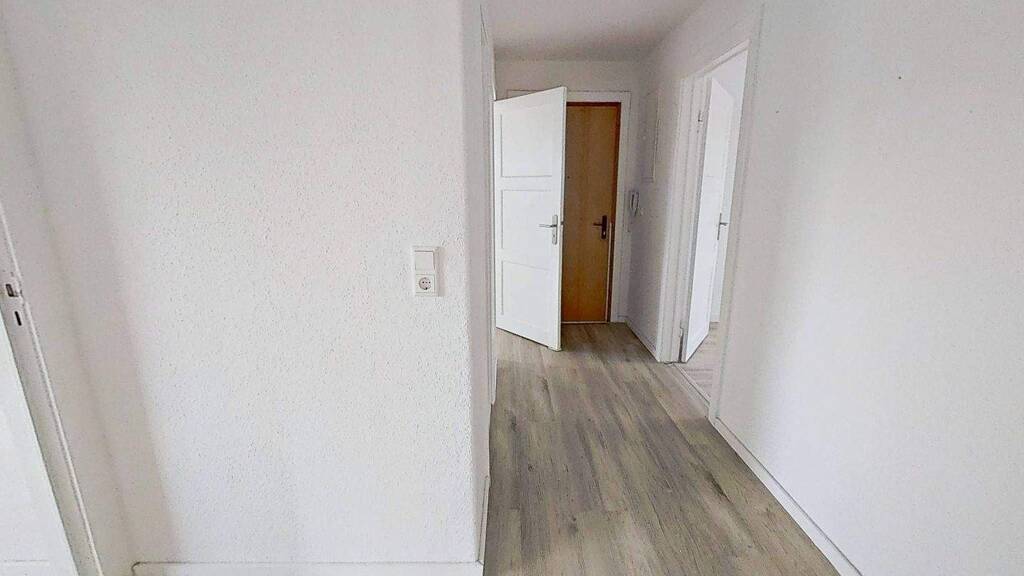Alle Räumen werden von einem geräumigen Flur aus erreicht. Mittelpunkt der Wohnung ist das Wohn- und Esszimmer. Ein großes Fenster bringt viel Tageslicht in den Raum hinein und macht ihn hell und freundlich.
