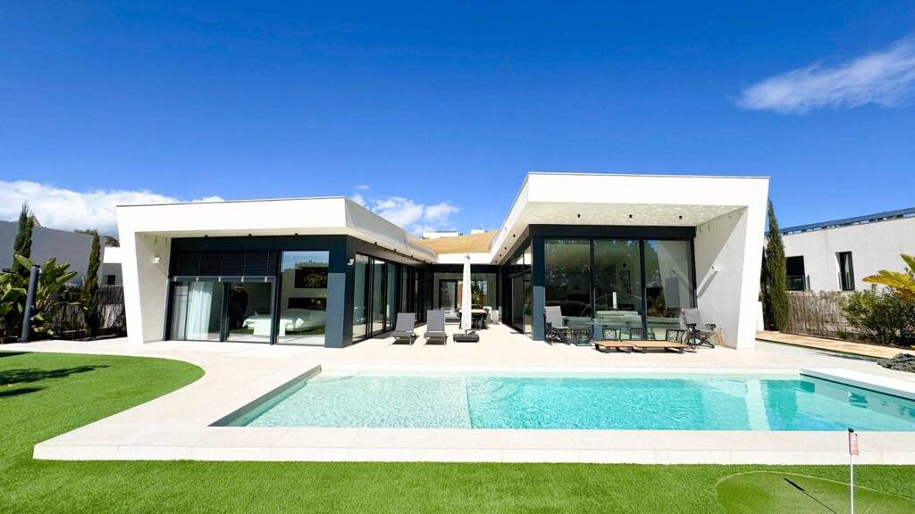 Moderne freistehende Villa mit 3 Schlafzimmern und 3 Bädern in erster Linie zum Golfplatz in der Anlage Mimosa Las Colinas. Das Clubhaus und alle verfügbaren Dienstleistungen sind zu Fuß erreichbar. Offene Küche und geräumiges Wohnzimmer mit herrlicher Aussicht auf den umliegenden mediterranen Wald und natürlich den preisgekrönten Golfplatz vor dem Anwesen. Stilvolles Design mit hohen Decken und hochwertiger Tischlerei in der gesamten Villa. 3 Schlafzimmer mit eigenem Bad und Gästetoilette. Küche im amerikanischen Stil mit allen Elektrogeräten sowie hübsch dekoriertes Wohnzimmer mit Kamin und Designermöbeln. Landschaftsgarten mit großer Terrasse und freier Aussicht auf den Golfplatz und den Wald. Privater überdachter Parkplatz für zwei Autos mit elektrischem Tor. Außengrillplatz und Petanca-Spielplatz sind ebenso im Preis inbegriffen wie alle Möbel. Zu den besonderen Ausstattungsmerkmalen gehören eine Fußbodenheizung in der gesamten Villa sowie 16 Sonnenkollektoren mit einem 10KW-Batteriesystem, eine Wärmepumpe und eine elektrische Abdeckung für den Pool sowie ein komplettes Innen-/Außenalarmsystem.