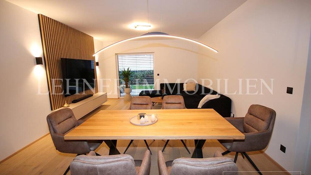 Eckdaten: Erstbezug, 126 m² Wohnfläche auf zwei Ebenen, 4 Zimmer, 55 m² große Südwestterrasse, 97 m² Gartenfläche, 246 m² Grundfläche, Kunststoff-Alufenster mit Dreifachverglasung inkl. elektrische Raffstores und Insektenschutz, Luftwärmepumpe-Fußbodenheizung, Parkettböden und Feinsteinzeug-Fliesen, Doppelcarport, HWB 49,70 kWh/ m²a. Bezug ab sofort möglich!