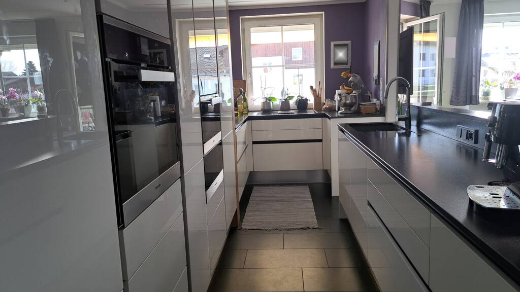WOHNUNG MIT WEITBLICK Diese schöne und gepflegte 3-Zimmer-Wohnung befindet sich im 1. OG eines Mehrparteienhauses mit nur 4 Wohneinheiten in schöner Ruhelage am Rad einer Wohnsiedlung mit Ein- bis Mehrfamilienhäusern. Die Wohnung besticht durch das gepflegte Erscheinungsbild und die optimale Raumaufteilung. Vom Wohnzimmer mit Kaminofen gelangt man auf die nach Süden ausgerichtete Loggia mit wunderschönem Ausblick. Die moderne und neue Küche, welche zum Wohnraum hin offen gestaltet ist, bietet reichlich Platz und ist mit hochwertigen E-Geräten ausgestattet (die Küche ist nicht im Kaufpreis enthalten, kann jedoch abgelöst werden). Das Badezimmer verfügt über eine Badewanne, Dusche sowie einem Waschmaschinen-/Trockneranschluss und ist vom WC getrennt situiert. Die 3-fach-Thermofenster wurden vor ca. 6 Jahren eingebaut und verfügen über Außen-Jalousien. Im Untergeschoss befindet sich der zur Wohnung gehörende große Kellerraum mit eigener Eingangstüre. Weiters befindet sich im Keller ein Fahrradabstellraum und ein großer Allgemeinraum. Den Hausbewohnern steht ein großzügiger Garten für die allgemeine Nutzung zur Verfügung. Diese Wohnung eignet sich nicht nur für den Eigenbedarf, sondern ist auch hervorragend zu vermieten. Auch als Ferienwohnung kann dieses Objekt genutzt werden.