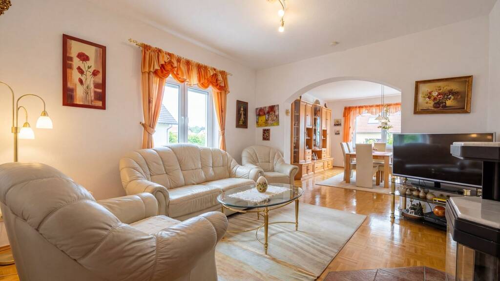 Insgesamt stehen sechs Zimmer zur Verfügung, die flexibel als Wohn-, Schlaf-, Kinder-, Arbeits- oder Gästezimmer genutzt werden können. Zwei Badezimmer sowie ein zusätzliches Gäste-WC sorgen für Komfort im Alltag. Zwei vorhandene Einbauküchen bildet eine praktische Grundlage für die weitere Gestaltung.
