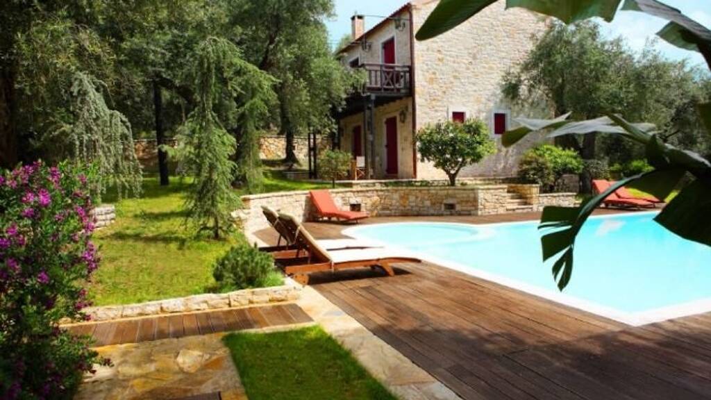 Das Anwesen bestich vor allem durch das traditionelle und dennoch elegante Design - traditionelle korfiotische Architektur ist harmonisch mit modernster Ästhetik erfüllt. Das Ensemble besteht aus 2 freistehenden Villen und weiteren 2 Bungalows, die alle einen großen Gemeinschaftspool von 11m x 6m verfügen, sowie ein Kinderbecken und die prachtvollen Gärten. Der Außenbereich und sämtliche Außenanlagen sind optimal angelegt - es gibt eine Fülle von wunderschönen Bäumen, Blumen und Sträucher, Rasen, Wege, welche mit Steinmauern und Stufen Dekorativ als auch Bereichsangrenzend angelegt sind. Überdachte Sitz- und Liegebereiche befinden sich reichlich und sind ideal für eine Umfangreiche Nutzung im Freien. Der Poolbereich verfügt über eine schöne Holzterrasse mit viel Platz für Liegestühle.