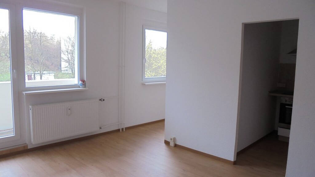 Die sanierte 1-Raum-Wohnung ist ideal für Studenten, Schüler und Azubis. Von dem geräumigen Wohnzimmer aus erreicht man die Küche, die Schlafnische sowie den Balkon. Die Küchennassstrecke ist mit einer Designbeschichtung versiegelt. Das Bad ist mit Wanne ausgestattet und mit einer Designbeschichtung versiegelt. Alle anderen Wände sind in Raufaser / weiß gehalten. Der PVC-Design-Bodenbelag zeigt eine Holzoptik.