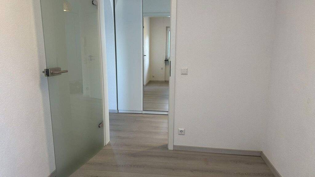Praktisch und flexibel: Vom Flur aus gelangen Sie in einen offenen Arbeitsbereich, perfekt für Homeoffice oder kreative Projekte. Die vorhandenen Büromöbel inklusive höhenverstellbarem Schreibtisch und Einbauschrank können auf Wunsch ohne Mehrkosten übernommen werden.