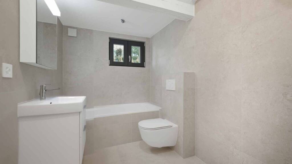 Da die Villa 2025/2026 renoviert wurde, präsentiert sie sich in einem Neuzustand, mit sauberen Oberflächen und hochwertigen Materialien. Das Heizsystem wurde auf ein System mit Wärmepumpe und Photovoltaikpaneelen auf dem Dach umgestellt. Das Dach profitiert von neuer Dämmung, ebenso wie die Fassaden von zusätzlicher peripherer Dämmung. Die Fenster sind dreifach verglast. Das Haus entspricht somit vollständig den heute geforderten Energiestandards.