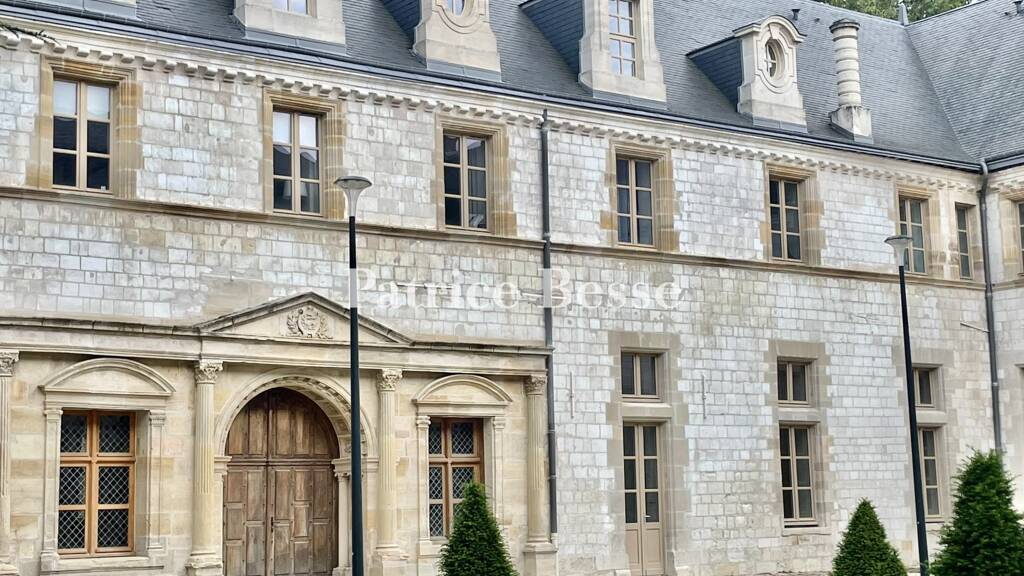 The former Toussaints Abbey, located on the edge of the historic centre, is flanked by the Place de l'Ecole des Arts and the Quai des Gaaz Arts. Part of the Order of Canons Regular of Saint Augustine, it was officially founded in 1062 on an island in the Marne on the edge of the town. It was razed to the ground in 1544 to prevent Charles V's troops from entrenching themselves there. Abbot Claude Godet then acquired a plot of land within the city walls to move his establishment there, and construction began in 1545. The congregation was dispersed in 1789, and the buildings became barracks, followed in 1790 by the Royal Artillery School, which remained there until 1803. From 1806 onwards, the building was used by Arts et Métiers students until 1861, when the Department acquired the buildings to establish the École normale d'instituteurs (primary school teacher training school). A major restoration campaign began in 2006 to create 34 flats with private parking spaces. The facades and roofs are listed as Historic Monuments. Built of chalk, on two floors set under slate roofs with stone dormer windows, the former abbey is made up of three angled wings forming a U shape with a large courtyard that opens onto the Place de l'Ecole des Arts through a stone porch bearing the inscription "Ecole Normale Primaire" and topped by a richly carved triangular pediment. The flat is on the ground floor, to the left of the former chapter house, which still has its stained glass windows and is topped by a slightly projecting porch with columns and a triangular pediment sculpted with a salamander, the emblem of François the First.
