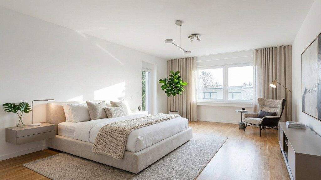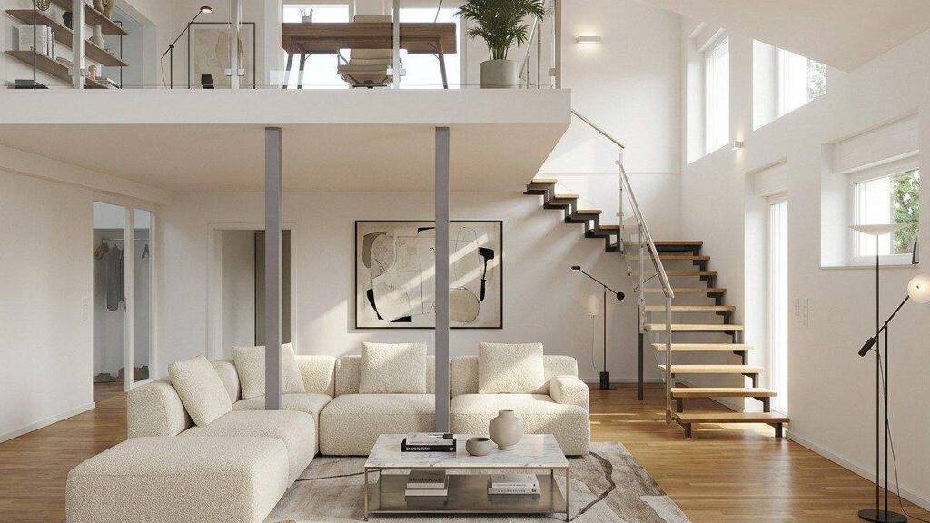 Die Räume auf den Bildern sind mithilfe von KI-Tools möbliert, um Einrichtungsmöglichkeiten zu visualisieren.