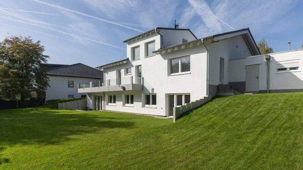 - Schöner Garten - geräumige Süd-West-Terrasse - Dachterrasse mit Skylineblick - Doppelgarage - Drei Außenstellplätze - Einbauküche - Deckenhöhe vom Wohn-Essbereich 4,75 m - Panoramablick - Masterbad mit Wanne und Dusche - Gäste-WC - Schiffsbodenparkett (Eiche 20mm) - Cotta Classic Fliesen in Steinoptik - gespachtelte Wände mit Malervlies - dreifach verglaste Kunststoff-Fenster (abschließbar) - elektrische Rollläden - Sicherheitshaustür - Netzwerkverkabelung (Cat 7)