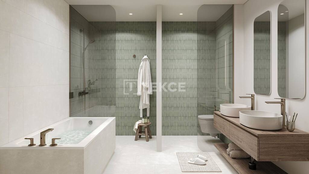 Jedes Apartment verfügt über eine offene Küche, ein geräumiges Wohnzimmer, ein Arbeitszimmer, einen Balkon, ein Bad und ein Schlafzimmer. Alle Schlafzimmer verfügen über ein eigenes Bad, das Hauptschlafzimmer über ein Ankleidezimmer. Die Bäder sind mit Badewannen ausgestattet. Die Duplex-Wohnungen bieten im Erdgeschoss eine offene Küche, einen Wohn- und Essbereich, eine Waschküche, ein Bad und ein Arbeitszimmer. Im Obergeschoss befinden sich die Schlafzimmer und ein großer Balkon, wobei jedes Schlafzimmer über ein eigenes Bad und das Hauptschlafzimmer über einen Ankleideraum verfügt.