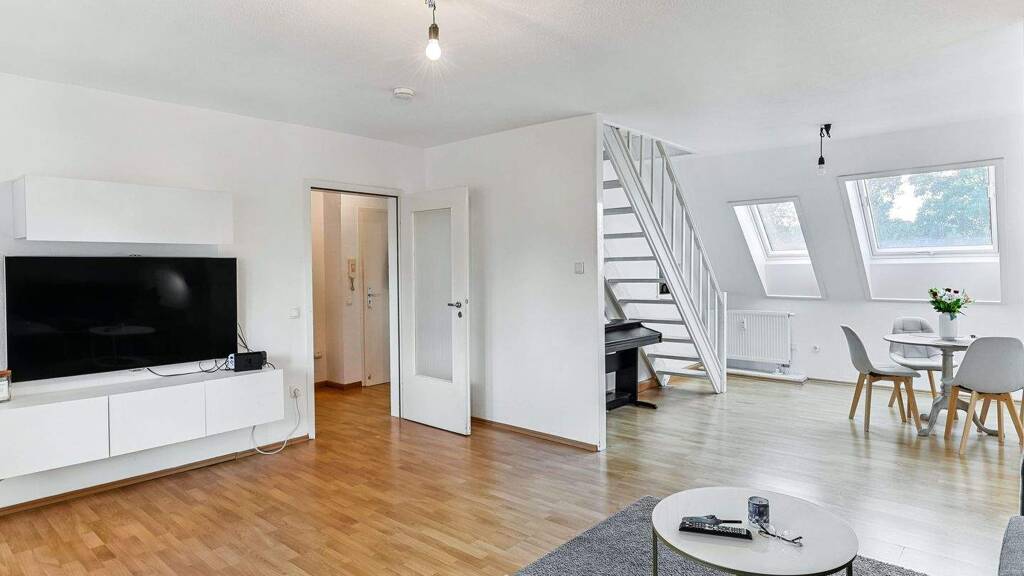 Stilvolles Wohnen über zwei Ebenen: Diese Maisonettewohnung im Dachgeschoss eines gepflegten Mehrfamilienhauses aus dem Jahr 1934 überzeugt mit ihrem besonderen Grundriss und einem offenen Loft-Ambiente. Die Maisonette-Ebene bietet zusätzliche Fläche und schafft eine klare Trennung von Wohnen und Schlafen. Die ruhige Lage in einer gewachsenen Nachbarschaft verbindet urbanes Wohngefühl mit einem angenehmen Umfeld.
