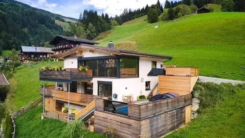 Diese exklusive Villa in Viehhofen, Bachlehen 305, besticht durch ihre hochwertige Bauweise in Holz- und Massivbauweise. Das 2017 erbaute Haus mit 161 m² Wohnfläche auf einem 577 m² großen Grundstück bietet 5 Zimmer verteilt auf 2 Etagen und ist sofort verfügbar. Besondere Highlights sind der Swimmingpool, der 200 m² große Garten sowie die 100 m² große Terrasse. Die Immobilie verfügt über eine Geothermie-Zentralheizung und weist mit Energieeffizienzklasse A und Heizwärmebedarf der Klasse B hervorragende Energiewerte auf.