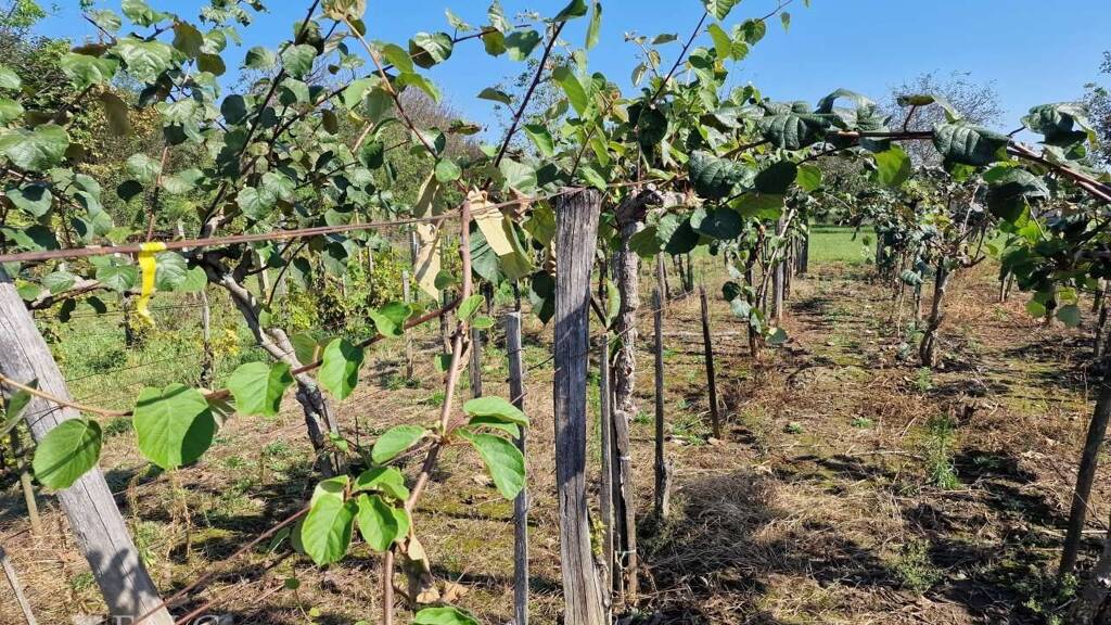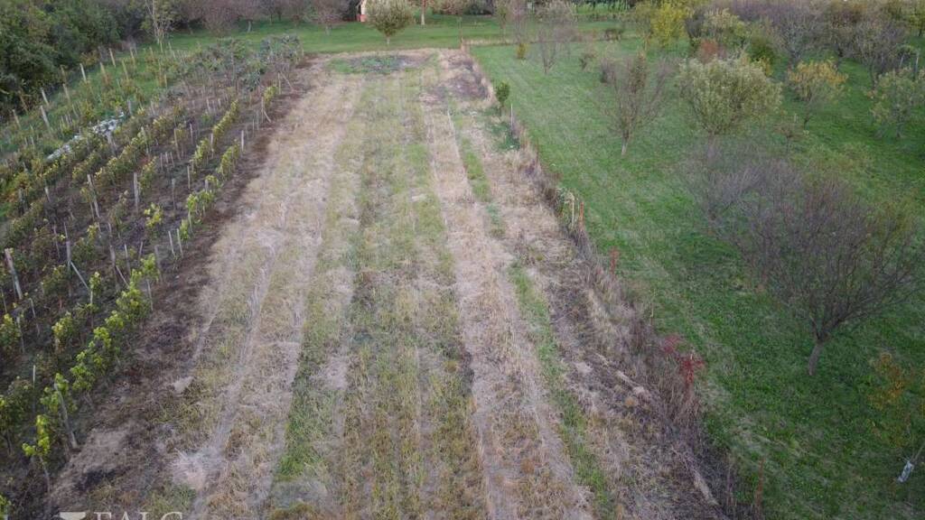 Das ebenerdige Grundstück befindet sich am Rande einer kleinen Gartensiedlung, verfügt über freie Flächen, aber auch Weinreben und ergiebige Kiwi-Pflanzen.