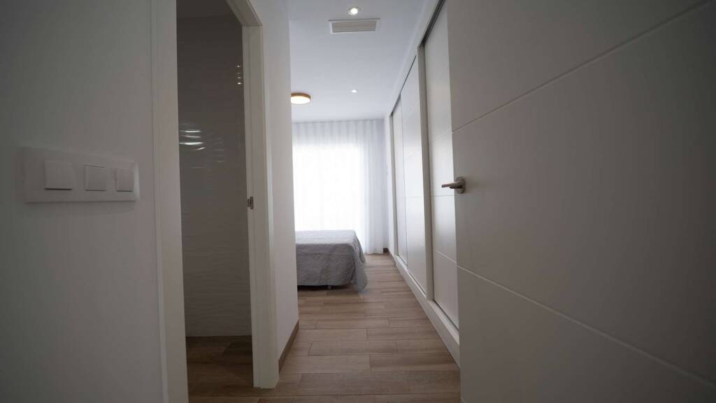 Es gibt 3 große Schlafzimmer, jedes mit Einbauschrank, und die Küche ist offen und modern und verfügt über alle Geräte.