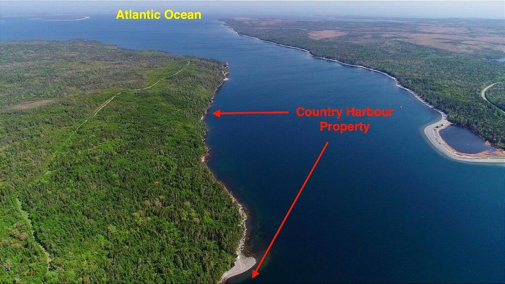 Die Erschließung ist zum Atlantik nach Süd-Westen ausgerichtet und befindet sich am Beginn einer knapp ca. 20 km in Landesinnere reichenden Meeresbucht an der sog. Eastern Shore in Nova Scotia. Die Meeresbucht sowie die nächste Ortschaft heißen Country Harbour. Country Harbour liegt ca. 45 Minuten entfernt von dem weithin bekannten Universitätsstädtchen „Antigonish“. Dort befindet sich die St. Francis Xavier University, die in den vergangenen Jahren dauerhaft den ersten Platz im offiziellen Ranking der Canadischen Universitäten belegte. Eine Tankstelle und ein Lebensmittelladen befinden sich in weniger als 10 Minuten Entfernung. Die Provinzhauptstadt Halifax liegt ca. 2,5 h entfernt.