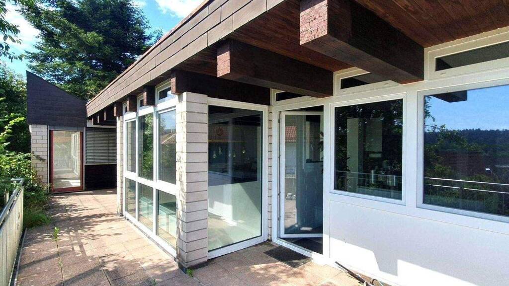 Es hat eine Gesamtwohnfläche von ca. 340 m² auf drei Etagen. Das Hanggrundstück ist ca. 800 m² groß, dazu wurde ein ca. 540 m² großes, angrenzendes Grundstück gepachtet,