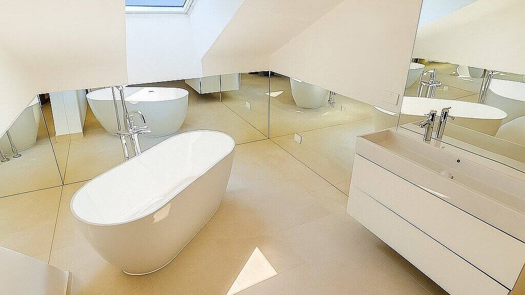 Auch den 3 Badezimmer steht an Exklusivität nichts nach. Eine freistehende Badewanne oder eine Regendusche, beides ladet zum Entspannen nach einen Arbeitstag ein, Ihren Ausstattungsideen steht nicht im Wege! Hochwertige und exklusive Ausstattung der Sonderklasse untermalen dieses einzigartige Loft!