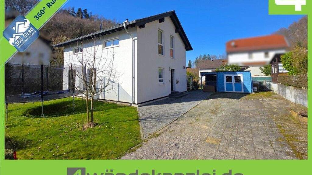 Haus, Küche und Garten sind schon da. Jetzt fehlen nur noch Sie und Ihre Kinder. Am Ende einer Sackgasse befindet sich das 2019 erbaute Einfamilienhaus, welches für die junge Familie wie gemacht ist. Schon im Eingangsbereich fühlt man das gute Klima im Haus. Genug Platz um die Garderobe unter zu bringen und den Alltag einfach Alltag sein zu lassen. Die einladende, offene und gut ausgestattete Küche mit dem großen Wohn- und Essbereich lassen für das Wohlfühlgefühl keine Wünsche offen. Ob es der integrierte Kaminofen ist, der im Winter zusätzlich für eine behagliche Wärme sorgt oder der direkte Zugang zur geschützten Terrasse, die im Sommer zum gemütlichen Verweilen, Grillen und Sonne genießen einlädt. Zusammen mit dem Rauschen vom Wasser durch den angrenzenden Bach werden Sie schnell Ihr neues Zuhause lieben lernen. Im Erdgeschoss befinden sich zudem ein Gäste-WC und ein Gästezimmer oder Büro mit direktem Zugang zur Terrasse. Auch der Technikraum mit Waschmaschinenanschluss befinden sich hier im Erdgeschoss. In der oberen Etage haben wir drei große und lichtdurchflutete Schlafzimmer und das großzügige Bad, welches auch in der "Rushhour" nicht zu klein ist. Eine große Eckbadewanne zum relaxen, eine großzügige Dusche zum Berieseln lassen und die zwei Waschbecken lassen auch hier keine Wünsche offen. Selbst der große Flur im Obergeschoss gehört zum großzügigen Wohnkonzept. Vor dem Haus sind die Stellplätze für die Autos und ein Holzschuppen für die Fahrräder und Gartengeräte. Genügend Grünflächen und ein Bach hinter der geschützten Terrasse animieren Kinder dazu, sich auszutoben und das schöne Wetter zu genießen.