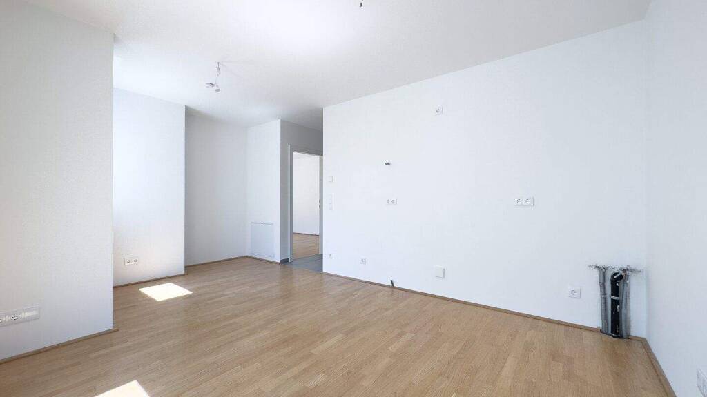 Diese im 6. Liftgeschoss situierte Wohnung bietet modernen Wohnkomfort und eine praktische Raumaufteilung. Alle Zimmer - die Wohnküche, das Schlafzimmer und das Badezimmer - sind zentral vom Vorraum aus begehbar, was eine flexible und effiziente Nutzung der Wohnfläche ermöglicht.