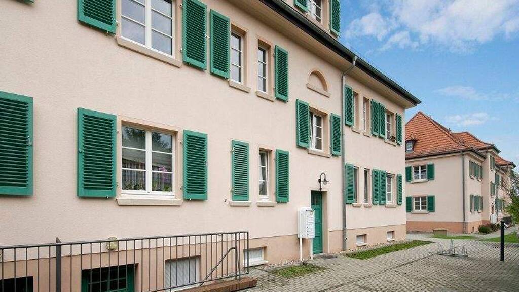 Unser Mietobjekt befindet sich in einem Vierparteienhaus und ist Teil des denkmalgeschützten Ensembles der Gartenstadt Lauta. Die Fassade mit grünen Fensterläden und grüner Hauseingangstür wirkt freundlich und einladend. Jeder