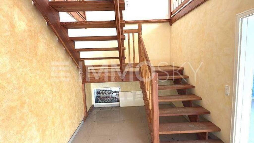Bereits beim Eintreten spüren Sie die besondere Atmosphäre dieses Hauses. Hochwertige Feinsteinzeugböden verbinden Alltagstauglichkeit mit Eleganz, während die kunstvoll gearbeitete Treppe aus Altholz als zentrales Gestaltungselement alle Ebenen miteinander verbindet. Traditionelle Handwerkskunst trifft hier auf moderne Ausstattung und verleiht dem Anwesen seinen unverwechselbaren Charakter.
