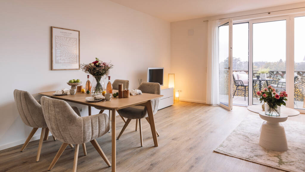 WOHNEN IN BESTER NACHBARSCHAFT Die Wohnungen am Französischen Garten werden höchsten Ansprüchen gerecht - sie vereinen stilvolle Zurückgezogenheit mit erstklassigem Wohnkomfort. So entsteht Wohnraum, der die stille Oase des Rückzugs harmonisch mit dem urbanen Leben der Stadt verbindet. Die barrierefreien Grundrisse sind durchweg zukunftsorientiert gestaltet und bieten Raum für individuelle Entfaltung. Von der nachhaltigen Bauweise bis zur durchdachten Ausstattung ist alles auf modernes Wohnen abgestimmt. Mit einladenden Balkonen, Terrassen und Dachterrassen wird Ihr neues Zuhause um Ihren ganz persönlichen Außenbereich erweitert. Ein Ort, an dem Sie den Tag bei frischer Luft ausklingen lassen oder in geselliger Runde unvergessliche Momente erleben können. Hier genießen Sie den Freiraum, der Ihrem Leben einen zusätzlichen Wohlfühlfaktor verleiht.