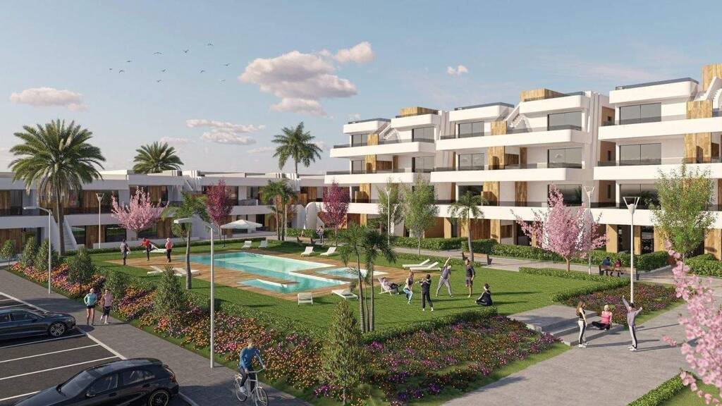 Die Wohnungen sind modern gestaltet und bieten ein offenes Wohnkonzept mit Einbauküche und Wohn-/Essbereich. Die Anlage befindet sich in Condado de Alhama, Murcia, in einem luxuriösen Resort mit Sportanlagen, umgeben von Natur, allen Annehmlichkeiten und mehreren Golfplätzen.