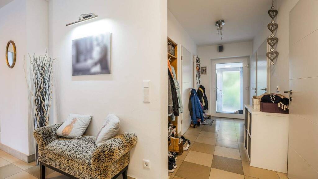 Das absolute Highlight ist die unverbaubare Lage direkt an einem angrenzenden Naturschutzgebiet. Hier genießen Sie absolute Privatsphäre und einen Panoramablick ins Grüne, der durch ein durchdachtes Lichtkonzept perfektioniert wird - so schweift der Blick vom wärmenden Kaminfeuer ungehindert in die Natur ohne dass störende Lichtquellen die Idylle trüben.