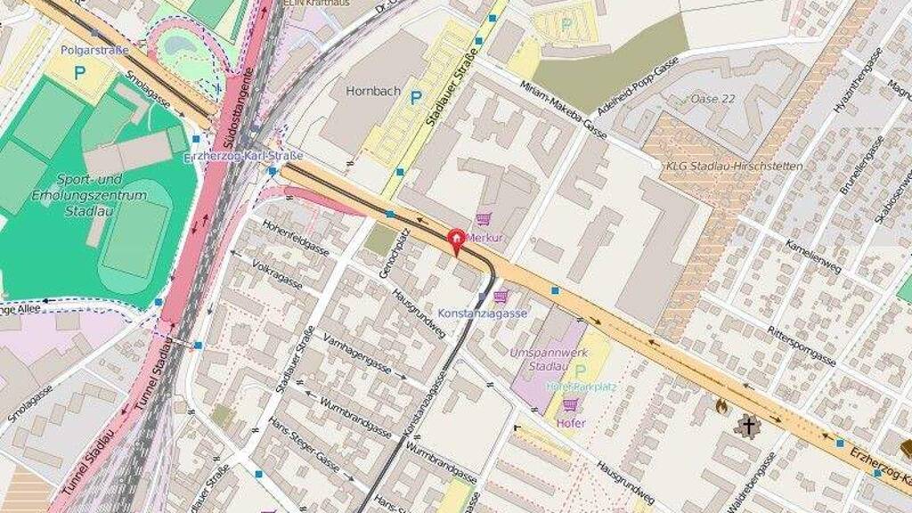 Mit dem Bus und der Straßenbahn gelangen Sie in kürzester Zeit direkt zur U1-Station "Kagran" und zur U2-Station "Aspernstraße" sowie U2-Station "Stadlau". Der Bahnhof "Erzherzog-Karl-Straße" ist fußläufig in ca. 5 Minuten erreichbar.