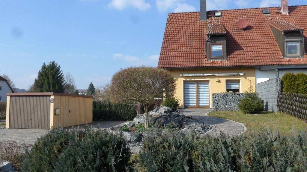 Diese voll unterkellerte Doppelhaushälfte ist in Massivbauweise um 1995 erbaut. Es stehen ca. 100 m² Wohnfläche im Erd- und Obergeschoss zur Verfügung. Über den Hauseingang erreichen Sie die abgeschlossene Küche, das Gäste-WC und das Treppenhaus. Das ca. 35 m² große Wohnzimmer ist zugänglich über die Küche oder den Hausflur. Der südlich ausgerichtete Terrassenbereich und der praktische, geflieste Essbereich werten das Wohnzimmer auf. Im Dachgeschoss stehen Flur, drei weitere Zimmer und ein Bad mit Fenster und Dusche zur Verfügung. Der teils beheizbare Keller bietet ausreichend Platz für Abstell- und Hobbymöglichkeiten.