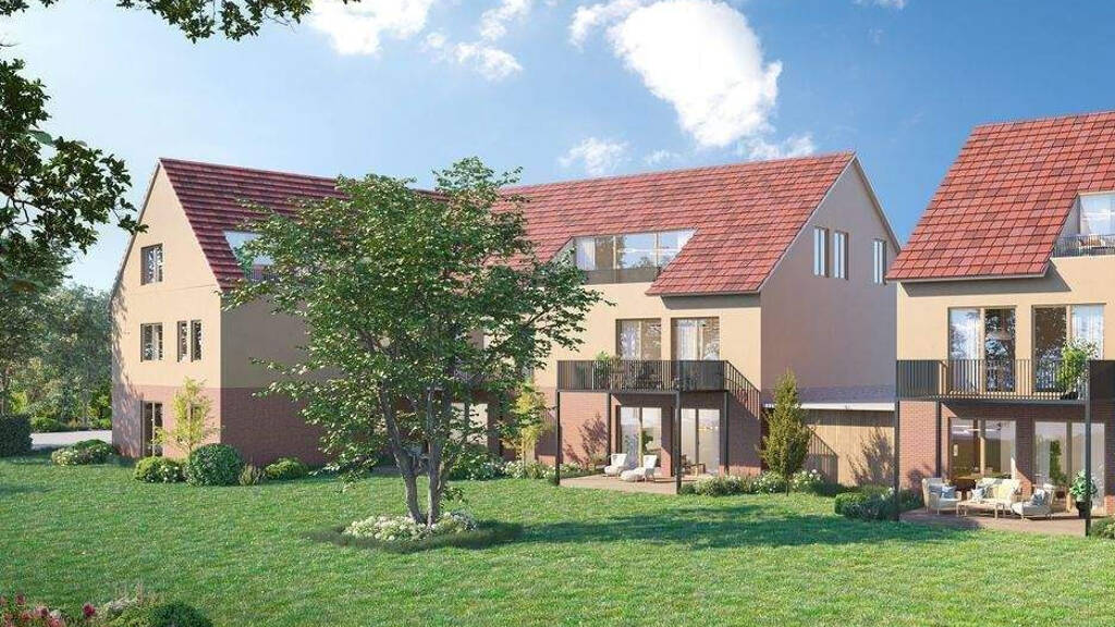 Wohnen in Lehrte-Steinwedel Bei der Bebauungsplanung mit Mehrfamilienhäusern wurde Wert auf den Erhalt des dörflichen Charakters gelegt. In einem modernen Landhausstil fügen sich diese Gebäudekörper harmonisch in den idyllischen Ortskern. Die gegliederten Fassaden zeigen mit Klinker- und Putzflächen, vorgestellten Balkonen, Dachgauben und Loggien ein typisches Bild. Für die Innenausstattung stehen passende Materialien und Farbkonzepte zur Auswahl.