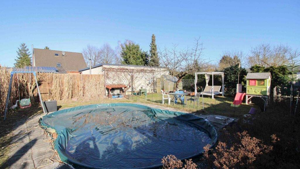 Das großzügige Grundstück schafft zudem Raum für Erholung, Gartenprojekte oder einen liebevoll gestalteten Außenbereich. Hier lassen sich gemütliche Stunden im Grünen oder am Pool ebenso verwirklichen wie Spielbereiche für Kinder oder kleine Rückzugsorte zum Entspannen.