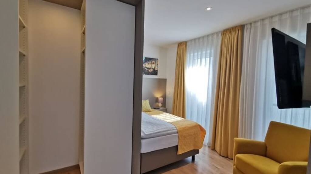 Luxuriös ausgestattet, verfügt dieses gemütliche 1- Zimmer Apartment über eine komplett neue Hotelzimmermöblierung, die exklusiv vom Schreiner auf Maß angefertigt wurde.