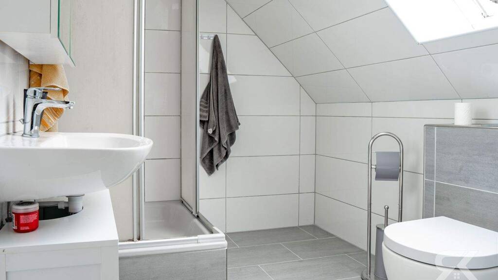 Im Obergeschoss sorgen 3-fach verglaste Fenster für eine sehr gute Wärme- und Schalldämmung, während im Erdgeschoss 2-fach verglaste Fenster verbaut wurden, die den Verkehrslärm von vorbeifahrenden Autos kaum hörbar machen. Dadurch genießen Sie trotz der zentralen Lage ein angenehm ruhiges Wohngefühl. Das Gäste-WC wurde ebenso wie das Badezimmer im Obergeschoss im Jahr 2021 renoviert. Das moderne Bad ist mit einer ansprechenden Dusche ausgestattet und fügt sich stilvoll in den hochwertigen Gesamteindruck des Hauses ein. Auch die Einbauküche stammt aus dem Jahr 2021, ist bisher unbenutzt und kann ganz nach Ihren Wünschen übernommen oder entfernt werden. Zusätzlich besteht die Möglichkeit, die Immobilie teilweise möbliert zu übernehmen, was den Einzug auf Wunsch deutlich erleichtern kann.