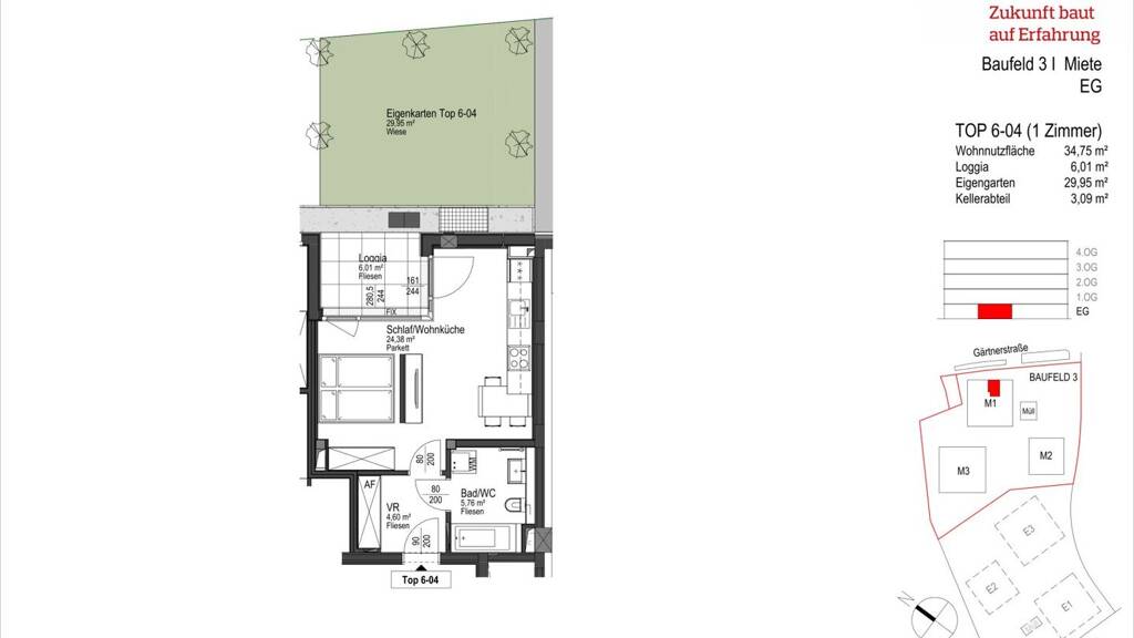 Wohnung Top 4, EG, mit Loggia und Garten: