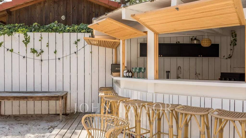 Eine Panoramaterrasse für Yoga oder Kontemplation überragt die Dünen, während die Sommerküche im Stil eines Heurigen zum pulsierenden Herzen der Sommertage wird: gemeinsame Mahlzeiten um den Feuerkorb, Aperitifs mit den Füßen im Sand unter dem Charme der Lichterketten.