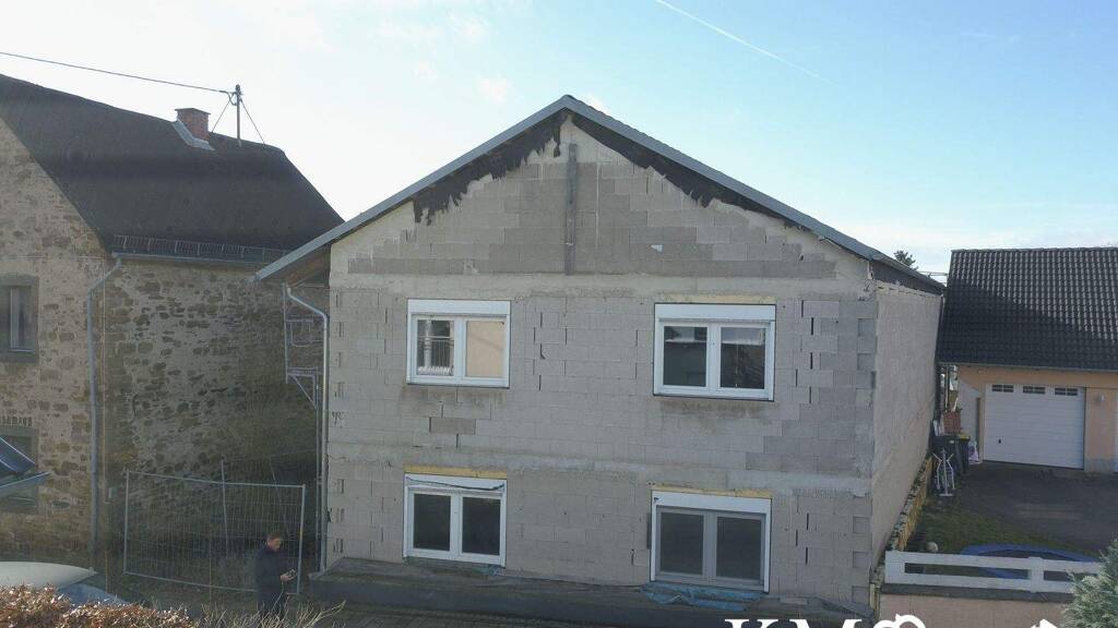 Aktuell befindet sich die Immobilie im Rohbauzustand: Das Dach ist bereits fertiggestellt und 2-fach verglaste Fenster sind verbaut. Der weitere Ausbau (Innenausbau, Haustechnik, Oberflächen etc.) wurde bislang nicht vorgenommen - der unfertige Ausbauzustand ist auf den Bildern deutlich erkennbar und ermöglicht Ihnen maximale Freiheit bei Grundriss, Ausstattung und Stil.