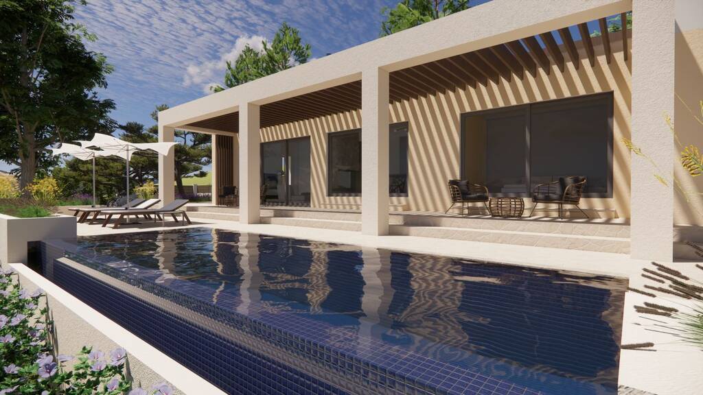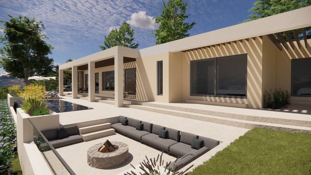 Draußen entdecken Sie Ihr persönliches Paradies mit kristallklarem Infinity-Pool und Grillplatz, wo Sie Ihre Gäste mit köstlichen Mahlzeiten verwöhnen können. Wenn es dunkel wird, versammeln Sie sich um den Lounge-Bereich mit Kamin, wo die Atmosphäre perfekt für gemütliche Gespräche, anregende Drinks und sternenklare Abende ist.
