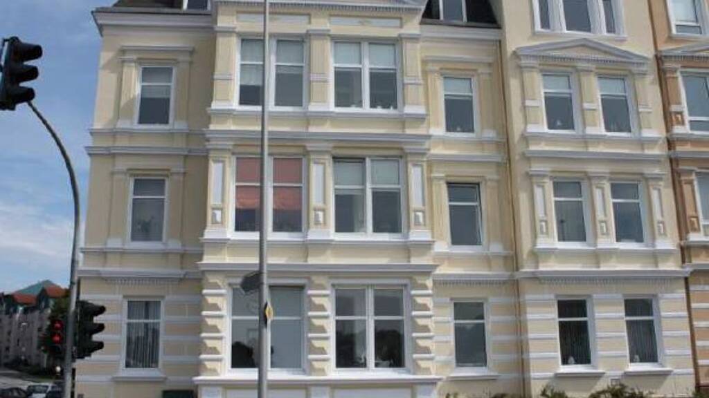 Lebensmittelpunkt ist die außergewöhnlich große Wohnküche mit Erker und dem angrenzenden Zimmer. Aus den zur Straße gelegenen Räumen genießt man teilweise einen schönen Blick auf den Hafen. Das Badezimmer ist modern und stilvoll ausgestattet und verfügt über eine Eckbadewanne sowie eine separate Dusche. Darüber hinaus gibt es zwei weitere Schlafzimmer und einen praktischen Abstellraum, in dem sich derzeit die Waschmaschine und der Trockner befinden. Ein Kellerraum gehört ebenfalls zur Wohnung.