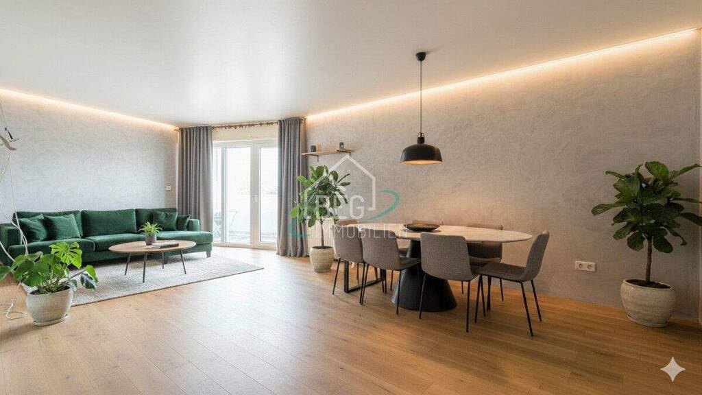 Die Wohnung überzeugt mit einer praktischen Aufteilung, darunter ein separates Schlafzimmer, ein Büro sowie ein großzügiger Wohn- und Essbereich. Ein Highlight ist der Balkon, der durch eine Glasschiebetür betreten wird und sich optional zu einem geschlossenen Wintergarten umfunktionieren lässt - ideal für ganzjähriges Verweilen. Hier genießen Sie einen herrlichen Ausblick auf den Kieselberg.
