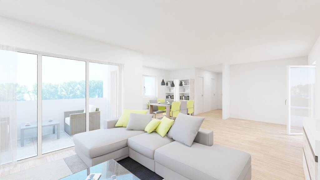 Highlight des Penthouses ist der großzügige Wohn- und Essbereich, der zu geselligen Abenden mit Familie und Freunden einlädt und den Zugang zu den stilvoll gestalteten Balkonen darstellt. Die Fußbodenheizung sorgt für behagliche Wärme, während die Premium-Vinylböden und die hochwertigen weißen Innentüren eine elegante Atmosphäre schaffen.