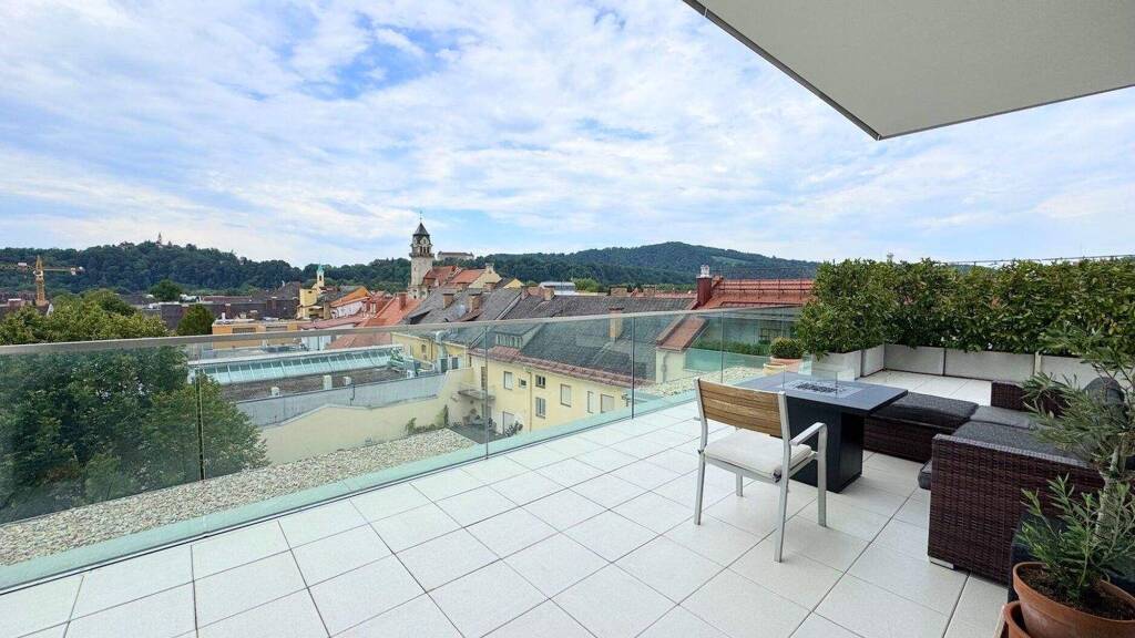 In absoluter Premiumlage direkt am Hauptplatz von Leibnitz präsentiert sich diese außergewöhnliche Maisonetten - Penthousewohnung als einzigartiges Wohnjuwel für anspruchsvolle Käufer. Auf zwei Ebenen erstreckt sich eine stilvolle Wohnfläche von rund 143m², die durch großzügige Raumgestaltung, modernste Ausstattung und exklusive Details besticht. Der offene Wohn-Essbereich mit integrierter Design-Einbauküche samt hochwertiger Steinplatte bietet nicht nur viel Platz für Genuss und Geselligkeit, sondern verbindet gekonnt modernes Lebensgefühl mit behaglichem Wohnkomfort. Bodentiefe Fenster fluten die Räume mit Licht und eröffnen den Blick auf die imposante, 125m² große westlich ausgerichtete Dachterrasse, die sich wie ein privater Rückzugsort über den Dächern von Leibnitz erstreckt, ideal für Sonnenuntergänge, Dinnerpartys oder entspannte Stunden im Freien.