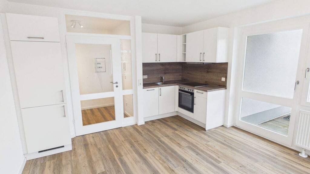 Diese Zwei-Zimmer-Wohnung verfügt über ein Wohnzimmer mit offener Küche und einem separaten Schlafzimmer, sowie Zugang zu einem Balkon. Die Wohnung bietet zudem ein modernes Duschbad.