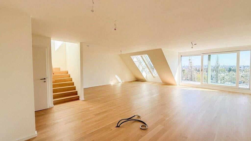 Dieses zweigeschossige Maisonette-Wohnung vereint Großzügigkeit, architektonische Klarheit und exklusiven Wohnkomfort auf einzigartige Weise. Ein Refugium in der Stadt, das sowohl durch seine durchdachte Raumaufteilung als auch durch besondere Details überzeugt - geschaffen für Menschen, die Wert auf Qualität, Licht, Ruhe und Individualität legen. Bereits beim Betreten der Wohnung empfängt Sie ein wohltuendes Gefühl von Weite und Offenheit. Der repräsentative Wohn- und Essbereich beeindruckt mit einer raumbreiten Fensterfront, die nicht nur für ein intensives Tageslicht sorgt, sondern auch den Blick auf die angrenzende Terrasse freigibt. Diese Terrasse ist nahtlos mit dem Wohnraum verbunden und erweitert den Innenbereich auf elegante Weise nach draußen. Sie bietet Platz für eine Sitzecke, Pflanzen oder einen Esstisch unter freiem Himmel - ein idealer Ort für entspannte Stunden im Grünen, mitten in der Stadt. Der Wohnbereich ist offen gestaltet und vielseitig nutzbar - als geselliger Treffpunkt, ruhige Rückzugszone oder stilvolle Kulisse für Gäste. Alle Anschlüsse für eine Küche sind bereits vorhanden, sodass Sie Ihre ganz persönliche Traumküche frei und individuell realisieren können - von minimalistischer Eleganz bis hin zu großzügigem Kochbereich mit Kochinsel sind alle Optionen offen. Die drei Schlafzimmer dieser Wohnung sind geschickt im Grundriss verteilt und bieten maximale Flexibilität. Jedes Zimmer besitzt seinen eigenen Charakter, geprägt durch Helligkeit, klare Raumstruktur und angenehme Proportionen. Besonders hervorzuheben ist ein Schlafzimmer mit einem direkten Zugang zu einer eigenen, privaten Terrasse - ein seltener Komfort, der diesen Raum in eine ganz persönliche Rückzugszone verwandelt. Hier lässt sich der Tag mit einem Kaffee im Freien beginnen oder abends ganz in Ruhe ausklingen. Das Hauptschlafzimmer bietet darüber hinaus den Luxus eines eigenen, en suite Badezimmers. Ausgestattet mit einer eleganten Badewanne, einem Waschbecken und einem WC entsteht hier ein privater Wohlfühlbereich mit Spa-Charakter - ideal für entspannte Momente fernab des Alltags. Auch das zweite Badezimmer ist hochwertig ausgestattet und verfügt neben einer bodengleichen Dusche ebenfalls über ein eigenes WC. So wird Komfort für Familie, Gäste oder auch das tägliche Leben ideal abgedeckt. Ein separates Gäste-WC sowie ein praktischer Hauswirtschaftsraum mit Waschmaschinenanschluss und Stauraum runden das funktionale Raumangebot ab. Über eine stilvoll integrierte Treppe gelangen Sie auf die obere Ebene des Penthouses, wo sich das absolute Highlight dieser Immobilie befindet: eine großzügige, nicht einsehbare Dachterrasse mit freiem Blick über die Umgebung. Diese Außenfläche bietet Raum für verschiedenste Gestaltungsmöglichkeiten - von der sonnigen Lounge über einen Dining-Bereich bis hin zu urbanem Gärtnern. Hier entsteht ein ganz besonderer Lebensraum, der sich über den Dächern der Stadt entfaltet - mit Weite, Ruhe und ganz viel Freiheit.