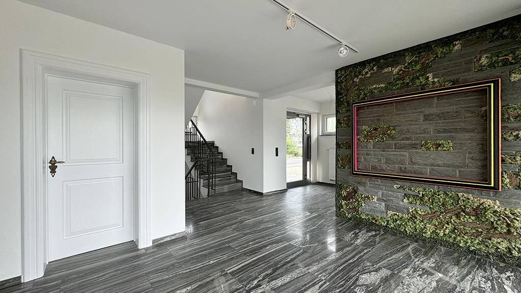 Das umfangreich und hochwertig sanierte Bürohaus besticht durch seine moderne Ausstattung und den hellen, repräsentativen Eingangsbereich. Im Erdgeschoss befindet sich ein großzügiges Großraumbüro, das eine offene Arbeitsatmosphäre schafft. Der angrenzende Sozialraum mit Anschlüssen für eine Teeküche sorgt für ideale Pausenmöglichkeiten. Im Obergeschoss befinden sich weitere helle Zimmer, die vielfältig genutzt werden können, mit Zugang zum Balkon.
