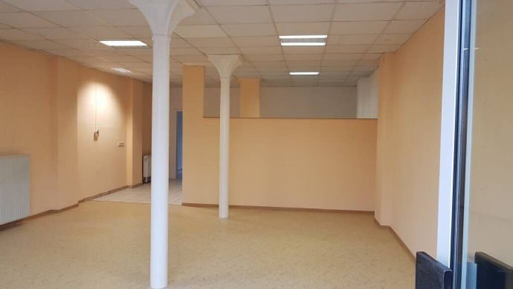 Großer Verkaufsraum, dieser ist zum Teil abgeteilt durch eine halbhohe Trockenbauwand. Im vorderen Bereich ist PVC-Belag verlegt. Der komplette hintere Bereich einschließlich Küche, Flur und WC, ist gefliest.